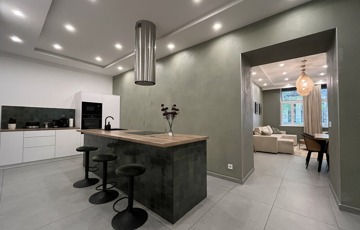 A lakás minden szobájához saját fürdőszoba tartozik – három zuhanyzós és egy kádas, egyedi tervezések alapján, minőségi anyagokból kialakítva. A terek tágasak, világosak, a beépített, design konyha pedig modern és elegáns, tökéletesen illeszkedve a prémium kivitelezéshez.