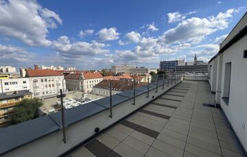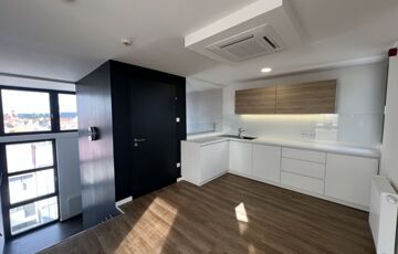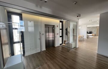 Modern, liftes Business Center legfelső szintjén található, ahol a privát lift közvetlenül a lakásban áll meg – ez a kényelem és elegancia tökéletes kombinációja.