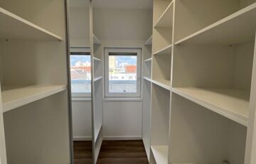 A lakás 3 hálószobából, tágas nappaliból, valamint minden szobához külön gardrób helyiségből áll, így a térérzet és a rendezettség garantált.