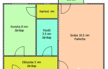 A lakásban 1 szoba, konyha, kamra, előszoba, fürdőszoba, erkély található.
