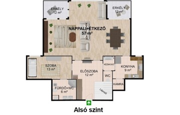 3 erkély, amelyek több irányból biztosítják a természet közelségét és a fényt.