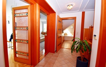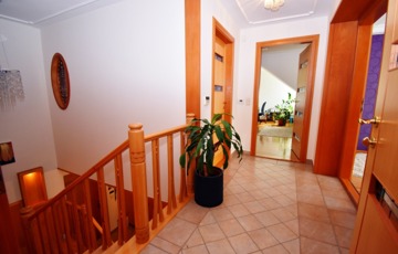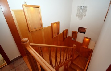Igényes burkolatok és belsőépítészeti megoldások: tömörfa lépcső, impozáns beltéri ajtók, korszerű külső nyílászárók.