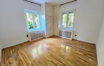 A 16 négyzetméteres hálószobában is van két nagy ablak, egy beépített sarokszekrény és ebben a helységben is jó minőségű faparketta található.