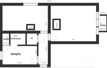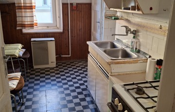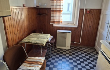 Tágas előszobából, ahol beépített szekrény is található, nyílik 2 különálló szoba, a nagyobb 20 m2, a kisebb pedig 15 m2, az előszobából nyílik a wc is, a konyha 8 m2, ahol kamra is rendelkezésre áll, a konyhából nyílik egy fürdő fülke, ülő káddal, gáz bojlerrel.