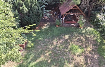 A társasház mögött van egy közös használatú 400 m2-es gondozott, füves kert, ahol szaletli, kerti bútorokkal, bográcsozó hely áll minden lakó rendelkezésére.