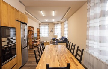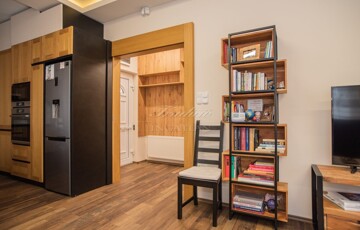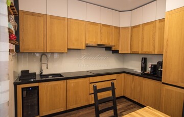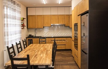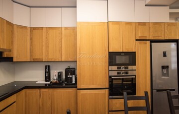 • Konyha: prémium VINYL burkolat, tömörfa konyhabútor, fekete gránit munkalap, lacobel üveg hátfal, beépített Bosch gépek, borhűtő, GREE inverteres klíma.