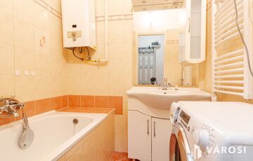 - Beépített szekrények a nappaliban és a közlekedőben, amelyek praktikus tárolást biztosítanak.