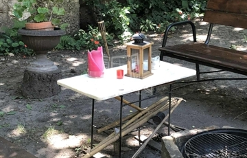 A parkoló mellett egy kb. 100 m²-es közös kert található, grillezésre és pihenésre kialakítva, gazdag, dús növényzettel. A praktikumot tovább növeli a biciklitároló kerti csap és lehetőség van hintát vagy függő ágyat is feltenni.