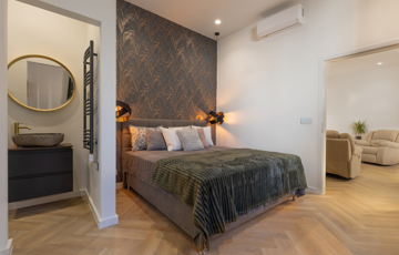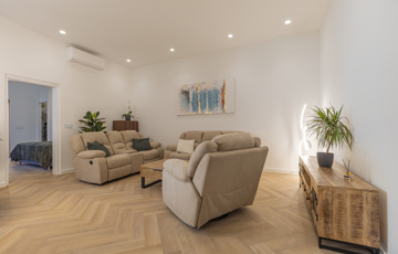 The apartment has been renovated with top-quality materials, craftsmanship, and interior design, creating a modern yet timeless atmosphere.