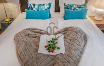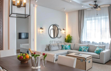 Az ingatlan : lakás : 63 m2  + 2 db  terasszal rendelkezik, amelyek szumma : 26,62 m2, a liftes társasház 1. emeletén helyezkedik el, Karibi hangulatú belsőépítészeti megoldásokkal, szállodai felszereltségű,exkluzív szinvonalú, teljesen bútorozott, gépesített, amelyet a vételár tartalmaz.