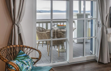 Mesés balatoni panorámával rendelkezik, az ingatlan közvetlen vízparti, saját stranddal rendelkezik, vizisportolási lehetőség, játszóház, wellness, csupán 50 méterre található.