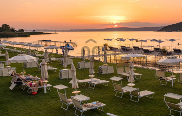 Mesés balatoni panorámával rendelkezik, az ingatlan közvetlen vízparti, saját stranddal rendelkezik, vizisportolási lehetőség,  játszóház, wellness,  csupán 50 méterre található.