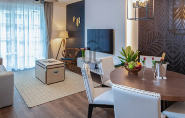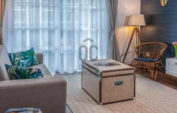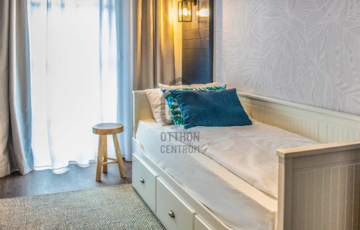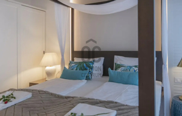 Az ingatlan :  lakás : 63 m2 - es  + 15 m2 - es terasszal rendelkezik, a liftes társasház 1. emeletén helyezkedik el, Karibi hangulatú belsőépítészeti megoldásokkal, szállodai felszereltségű, exkluzív szinvonalú, teljesen bútorozott, gépesített, amelyet a vételár tartalmaz.