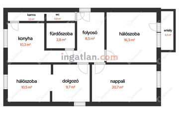- nappali + 3 különálló hálószoba (de ha úgy tetszik akkor 4 külön szobát is kialakíthatsz