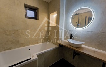 A felújítás során minden megújult: új elrendezés, modern gépesített konyha, hűtő-fűtő klíma, valamint saját garázs és kertkapcsolat teszi teljessé az otthont.