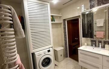 A lakás 68 négyzetméteren kínál átgondoltan kialakított, élhető tereket: két hálószoba, egy tágas, amerikai konyhás nappali, modern, beépített és gépesített konyhabútorral, valamint külön helyiségben található fürdőszoba és WC szolgálja a mindennapi kényelmet. A lakás valódi különlegessége a fürdőszobában helyet kapott saját szauna, amely egyedi hangulatot és wellnessélményt visz a hétköznapokba.