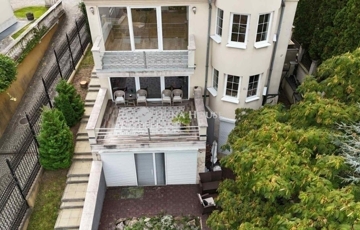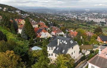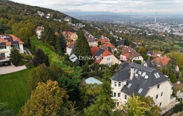 32 m²-es napfényes terasz gyönyörű zöld kertkapcsolattal és városi panorámával