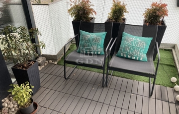 A 13 m²-es erkély igazi kis oázis – tökéletes hely reggeli kávéhoz, grillezéshez vagy egy nyugodt esti beszélgetéshez.