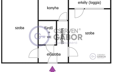 Elrendezés szerint az 51 m2 magába foglal két tágas szobát, egy normálméretű konyhát, egy előszobát, és egy innen nyíló zuhanyzós fürdőt, ami a WC-t is magában foglalja. A szélesebb szobához tartozik a már említett --erkély, ami valójában lodzsa, így zárt oldalakkal és födémmel rendelkezik. A lodzsa, a praktikum jegyében, ablakokkal került lezárásra, így télen-nyáron használható, akár kiülni, akár ruhákat teregetni, vagy akármire is.
