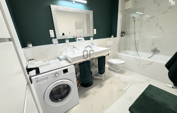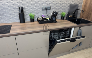 Bútorozott és gépesített: Minőségi bútorokkal és korszerű háztartási gépekkel felszerelt lakás.