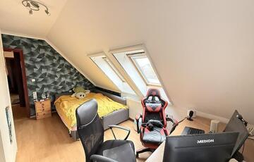 A szobák külön nyílóak, melyek laminált burkolattal rendelkeznek, a konyha és a vizes helyiségek pedig járólaposak. A lakás melegéről turbós kombi cirkó gondoskodik, egyedi méréssel. A nyílászárók az alsó szinten műanyagok a tetőtérben fából vannak és redőnnyel ellátottak. A lakás dupla komfortos alsó szinten kádas fürdőszoba található míg az emeleten zuhanyzó került beépítésre, külön mellékhelyiséggel. A beépített bútorok a vételár részét képezik.