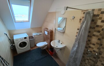 - A fürdőszoba járólappal, míg a többi helyiség laminált parkettával burkolt.