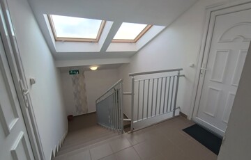 - 2023-ban épült háromemeletes társasház tetőtere.