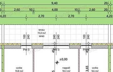 A meghirdetett földszinten található 52,60 nm-es lakásban amerikai konyhás nappali, 2 szoba, fürdőszoba, külön WC, előtér kerül kialakításra. Nappaliból 15 nm-es terasz és 72 nm-es kertkapcsolat nyílik.
