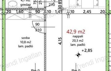 A meghirdetett 1. emeleten található 42,90 nm-es lakásban amerikai konyhás nappali, szoba, fürdőszoba, külön WC, előtér kerül kialakításra. Nappaliból 10,30 nm-es erkély nyílik.