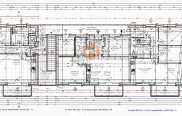 Nettó ( hasznos alapterület) : 57,4 m2, bruttó alapterület: 66,5 m2.