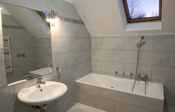 A tetőtéri beépítéssel nem csökken a belmagasság az építési megoldásnak köszönhetően. A központi elhelyezkedés ellenére a lakás csendje és nyugalma szinte meglepő.