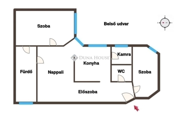 A lakás a belső udvarra néz, így a belváros nyüzsgése mellett csend és nyugalom is biztosított.