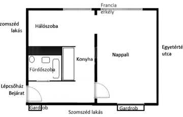 Egy 1+1 félszobás elrendezésű ingatlanról van szó. Nappali franciarkélyes.