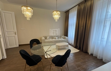 The apartment has undergone a full, premium-quality renovation: brand-new utilities, modern condensing boiler, underfloor heating, multi-split AC in all rooms, and impressive 3.5-meter ceilings that create an elegant, spacious feel. The layout is smart and well-designed, offering comfortable, functional living in every corner. Generous built-in storage, a stylish open-plan living room with a fully equipped kitchen, and restored original doors add to the unique charm. The roof above the unit was replaced last year, and the building itself is tidy, well-kept, and continuously improved.