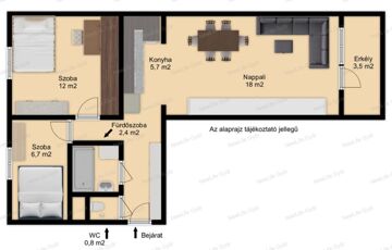 A jelen hirdetésben rögzített, az ingatlannal kapcsolatos adatok, információk az Eladó/Megbízó tájékoztatása alapján kerültek meghatározásra.