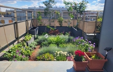 - Két részből álló, 50 m²-es saját tetőkert igazi zöld oázis a város felett + 59 m²-es napfényes saját terasz, amely tökéletes helyszín reggeli kávéhoz, grillpartikhoz vagy esti pihenéshez