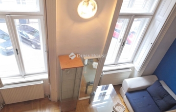 V. kerületben, a Nyugati pályaudvartól karnyújtásnyira, kívül-belül szép állapotú, liftes polgári társasház 1. emeletén eladó egy csendes utcára néző, 51m2-es, dupla galériás (a galéria területe nincs beleszámolva az 51m2-be, ezekkel együtt 82m2 terület áll rendelkezésre), cirkófűtéses, tágas tereket kínáló, jó állapotú lakás.