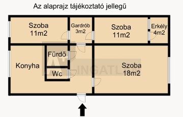 - 60 m2: 2+1 szoba. Mindhárom szoba külön nyíló.
