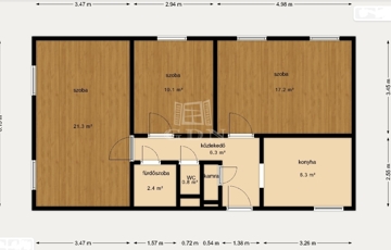 ✔️ A lakás remek elosztású: minden helyiség külön nyílik, a terek tágasak és praktikusak.