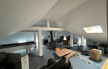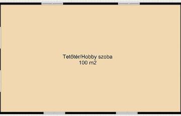 A lakáshoz tartozik még egy 100 m2-es tetőtéri „hobby” helyiség.