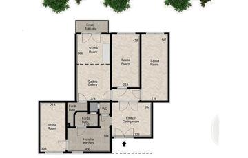 A lakás központi részén az étkező helyezkedik el, innen közelíthetjük meg a szobákat és a konyhát is.