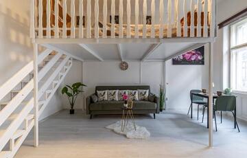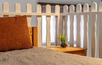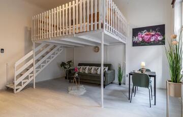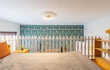 A két ablakos szoba igény szerint leválasztható, jelenleg a 3,65 m belmagasságot kihasználva hálógaléria került kialakításra.