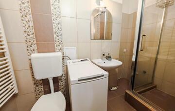 • Modern lapradiátoros fűtés, a fürdőben törölközőszárítós radiátor