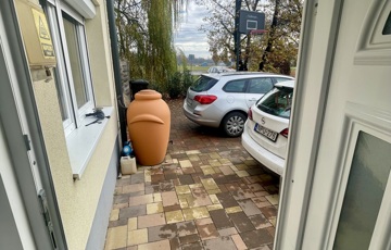 - Gépkocsibeálló: ház előtt térkövezett részen két autó számára biztosított