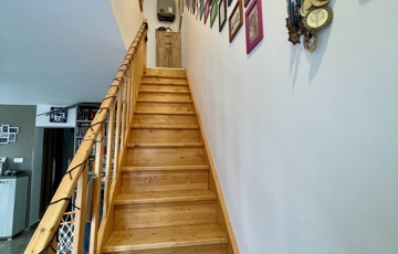 - Lépcső: acélszerkezetre épült keményfa borítású