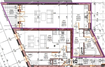 A társasház első emeletén, 46,37 m2 lakóterű, nappali + amerikai/konyhás lakás, 5,64 m2 erkéllyel megvásárolható.