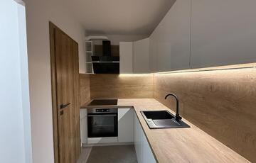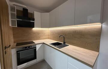 A konyhában új konyhabútor van, amely főzőlappal és villanysütővel, illetve szagelszívóval felszerelt.