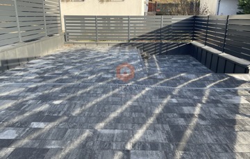 -privát térkövezett 100 m2-es kertkapcsolat , nagyméretű terasszal
