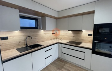 -teljesen gépesített amerikai konyhás nappali, beépített sütő, indukciós főzőlap, elszívó, beépített hűtő, mosogatógép, hűtő-fűtő klíma, különleges világítás technika,