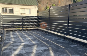 -privát térkövezett 45 m2-es nagyméretű terasz